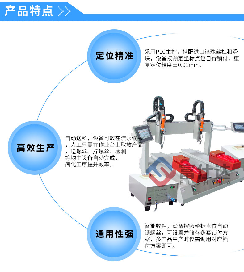 富仕达拥有独立研发设计团队,200多位自动化高级工程师,5000㎡自动锁螺丝机生产、测试车间,专业售后服务团队,为客户提供方案设计、设备制造、操作培训、售后服务等一站式服务。 公司将持续提升技术创新和产品服务方面的优势,坚持“专业、精工、服务”的企业理念,聚焦于自动锁螺丝设备生产,通过系统的一站式解决方案,真正的帮助客户提升效率、降低成本,提升客户的核心竞争力。