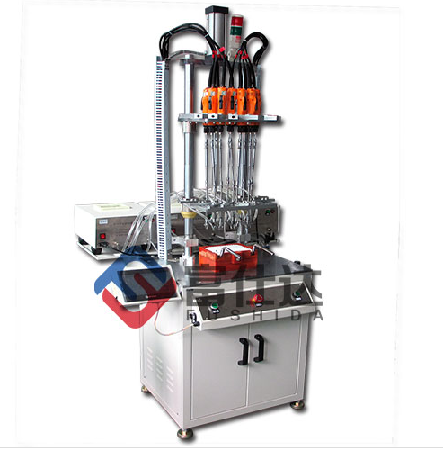 2.多轴自动打螺丝机是依据钢件锁螺钉部位,排好几个锁螺钉头,当钢件 由冶具固定不动好部位后,多轴一起一块儿锁螺钉,无论有是多少轴,打螺钉的周期时间跟锁一棵螺钉是同样的。