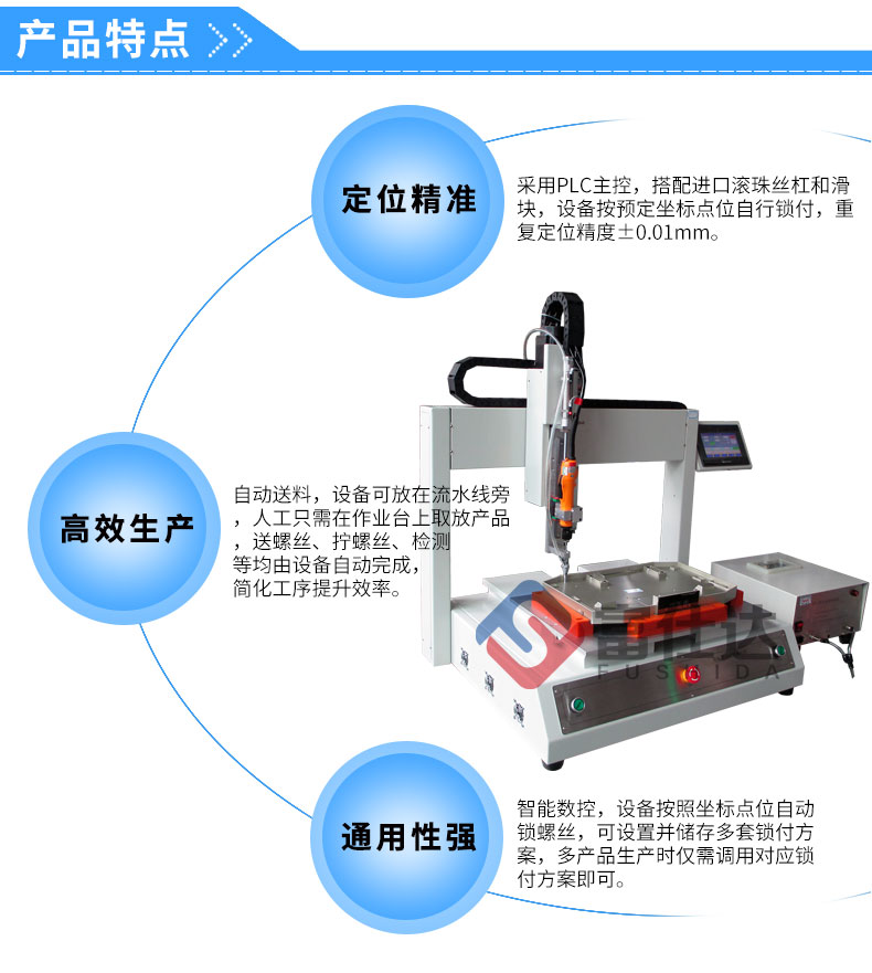 深圳市富仕达自动化设备有限公司是国内领先的以自动锁螺丝设备为核心的自动化设备制造商,坚持以客户需求为中心,定制自动化锁螺丝方案,已有超过4000家企业采用富仕达定制的自动锁螺丝设备实现“机器换人”,节省大量人力成本。